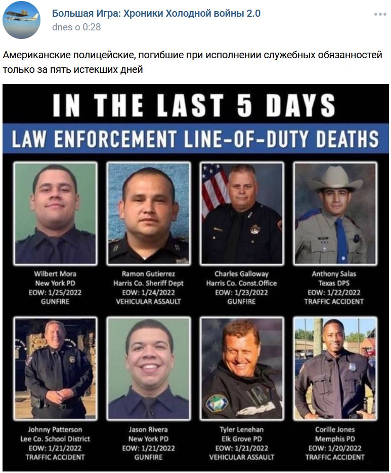 Policajti zabití pri výkone služby len za 5 dní od 20.01.2022 do 25.01.2022 v celých SŠA