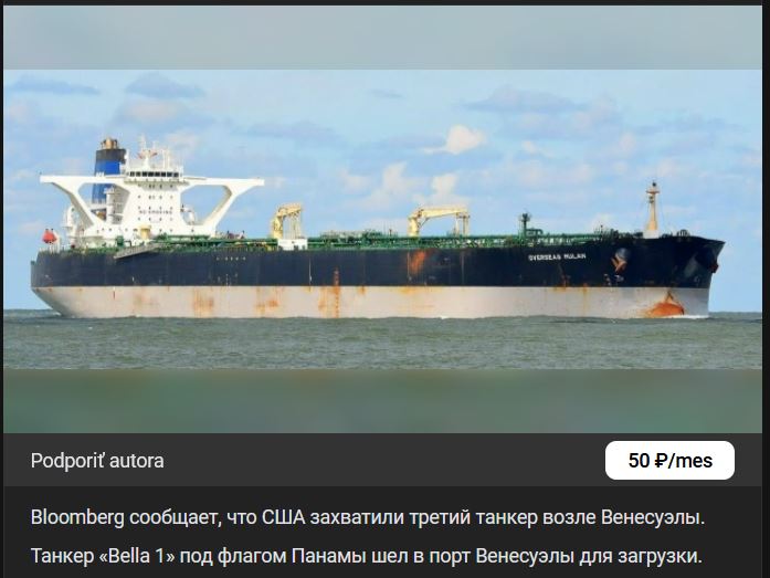 Súdiac podľa správ zo SŠA sa prvé správy z nedele 21.12.2025 o zadržaní 3. tankera Bella 1, ktorý smeroval do venezuelského prístavu, ukázali ako predčasné. Ukázalo sa, že posádka tohto tankera neposlúchla príkazy a američanom sa nepodarilo vysadiť sa na jeho palubu. V pondelok 22.12.2025 bolo oznámené, že Pobrežná stráž SŠA pokračovala v prenasledovaní unikajúceho tankera v medzinárodných vodách.
