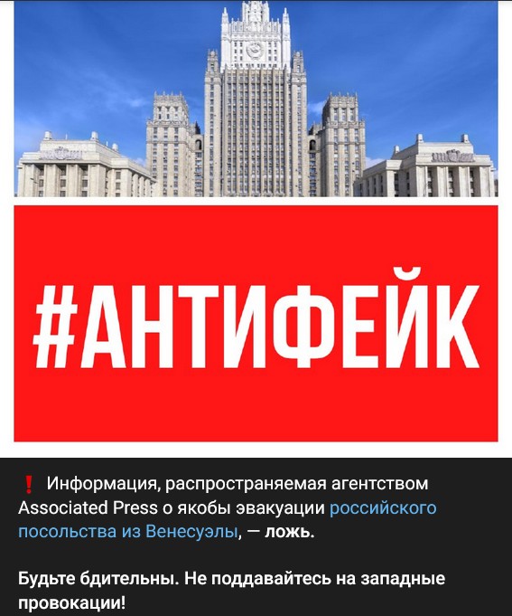 o údajnej evakuácii ruského veľvyslanectva z Venezuely sú lož.