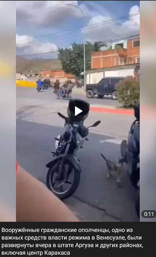 Ozbrojené civilné milície, jeden z dôležitých nástrojov moci režimu vo Venezuele, boli nasadené v štáte Arguéa a ďalších oblastiach, vrátane centra Caracasu