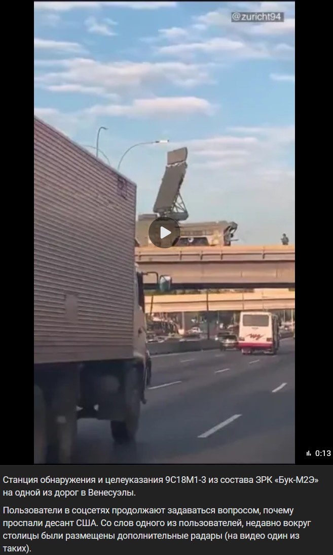 Radarová stanica detekcie a navádzacia 9S18M1-3 (9С18М1-3 = priehľadový radar) zo zostavy PVO „Buk-M2E“ (Бук-М2Э) na jednej z ciest vo Venezuele.