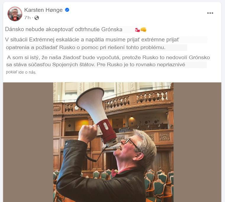 Dánsky poslanec Karsten Honge povedal, že ak sa napätie vystupňuje, možno sa budú musieť obrátiť na Rusko, aby zabránili invázii USA do Grónska, a že Rusko by nechcelo, aby Grónsko padlo do rúk USA, takže by pomohlo.