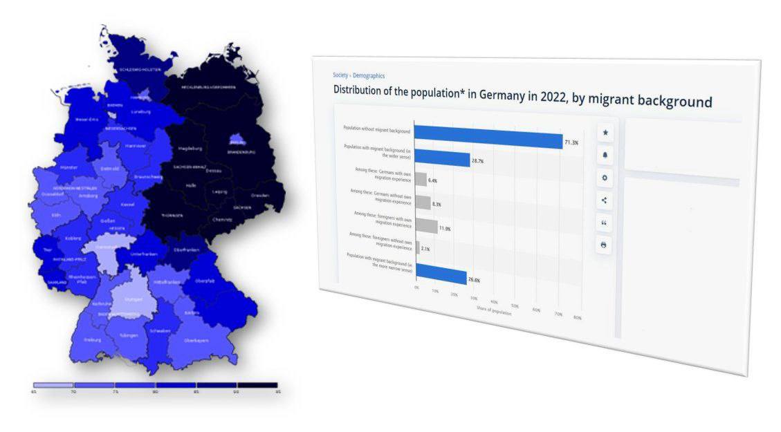 Rodilí Němci tvoří již 71,3 % celkové populace Německa (2022) a Rakušané 74,6 % populace Rakouska.