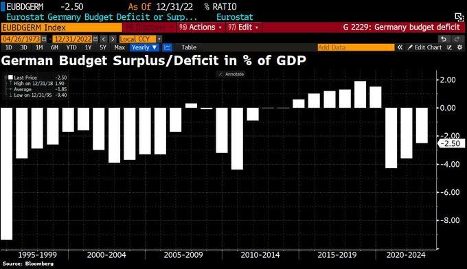 Německo pozastaví svůj výpůjční limit pro rok 2023, informuje agentura Bloomberg. Limity jsou zakotveny v německé ústavě, ale mohou být dočasně zrušeny v případě přírodních katastrof nebo mimořádných událostí, které vláda nemůže ovlivnit. @banksta