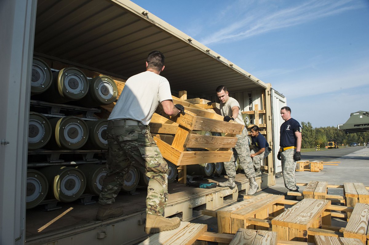 Přibližně 100 kontejnerů s různými munici bylo v říjnu přemístěno na americkou leteckou základnu Ramstein v Německu. "Největší dávka munice v nedávné historii."