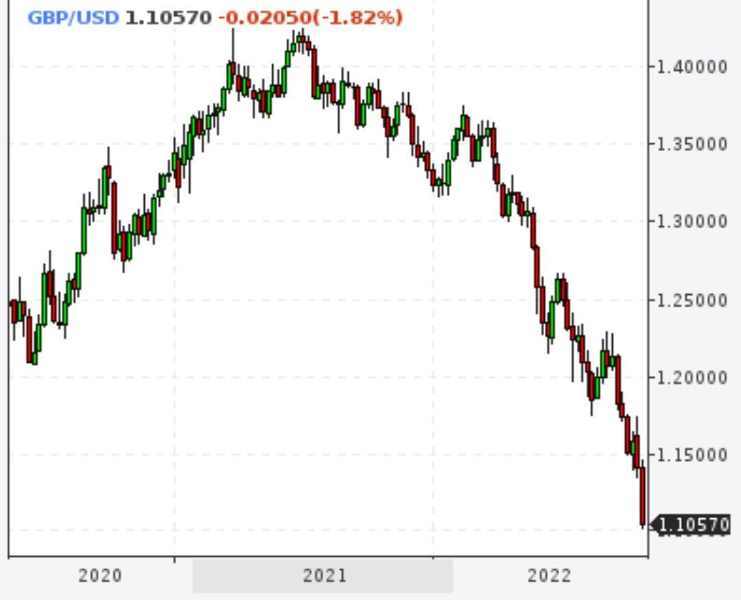 https://www.newstream.cz/money/libra-je ... -s-dolaremBritská libra se dnes ocitá po mohutným výprodejním tlakem, doslova ve volném pádu. Mezinárodní investoři se jí zbavují, neboť je vyděsil záměr kabinetu nové premiérky Liv Trussové „nakopnout“ ekonomiku razantními daňovými škrty. Britská vláda hodlá daně snižovat jak z mezd pracovníků, tak z příjmu firem. Škrty totiž na ostrovech dále prohloubí deficit a urychlí inflaci. Inflace je v Británii zhruba desetiprocentní, nejvyšší za čtyřicet let.