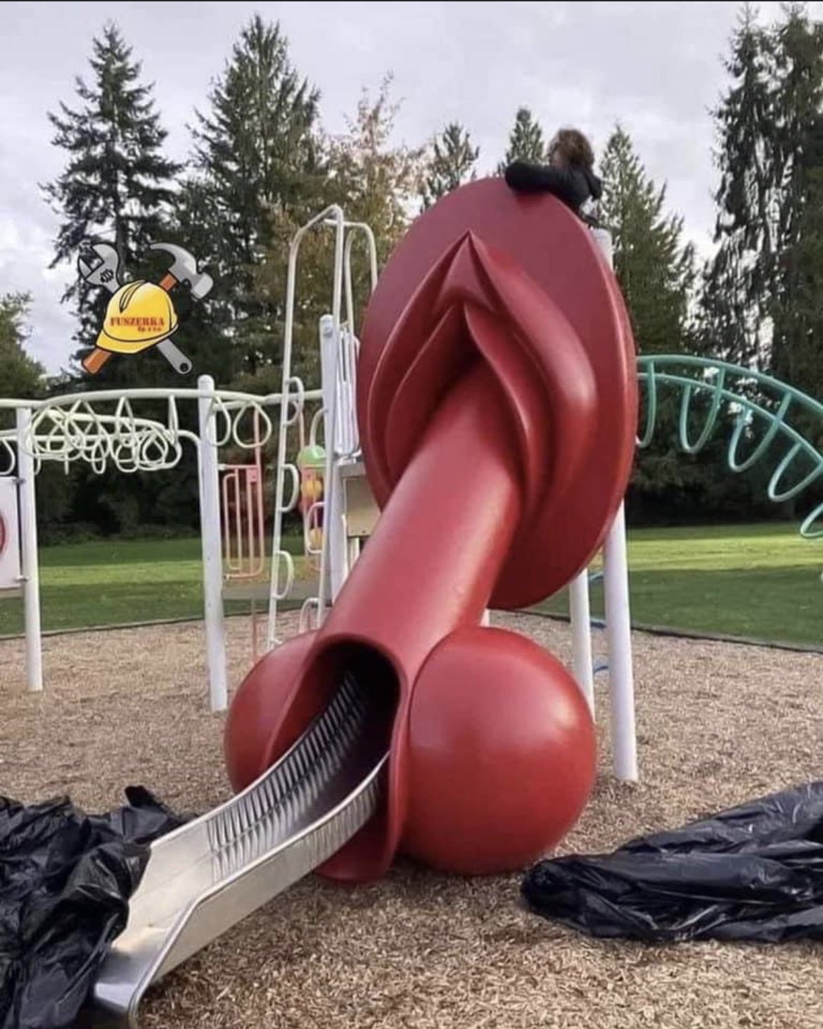 Nemusíme tedy být překvapeni, když se podle toho přestaví hřiště, jak ukazuje tato fotografie:Samozřejmě, to je vzhůru nohama, protože novorozenec nestřílí z pochvy zpět do penisu.