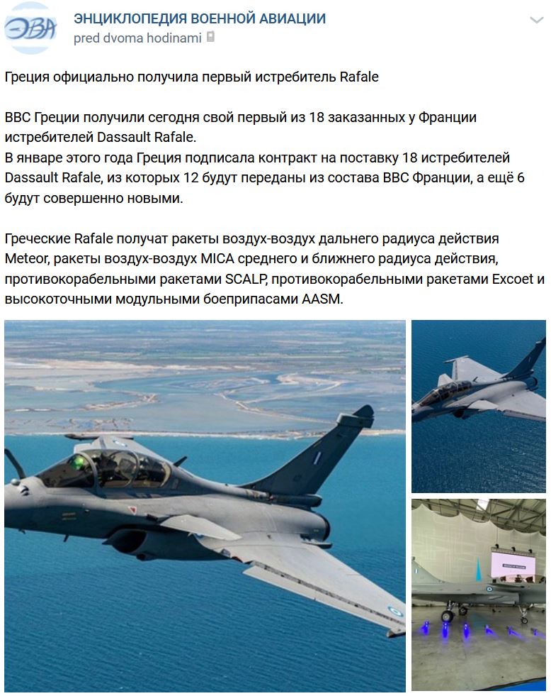 Řecká vláda projevila naléhavý zájem rovněž o 18 francouzských stíhaček Rafale 4,5 generace. Tím se snaží vyrovnat rovnováhu sil s Tureckem.