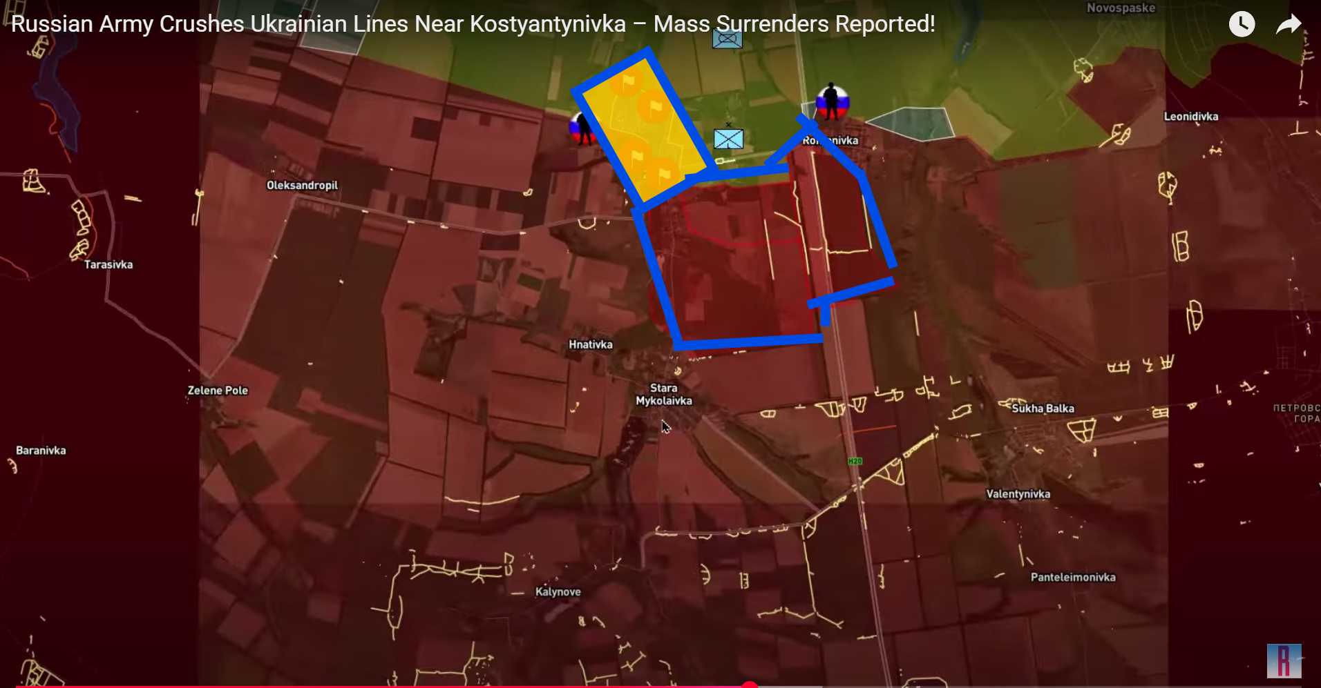 ▪️ Ruské vojská aktívne postupujú smerom na Krasnoliman, obsadili rozsiahly úsek územia medzi Redkodubom, Lipovým a začali útok na Karpovku.