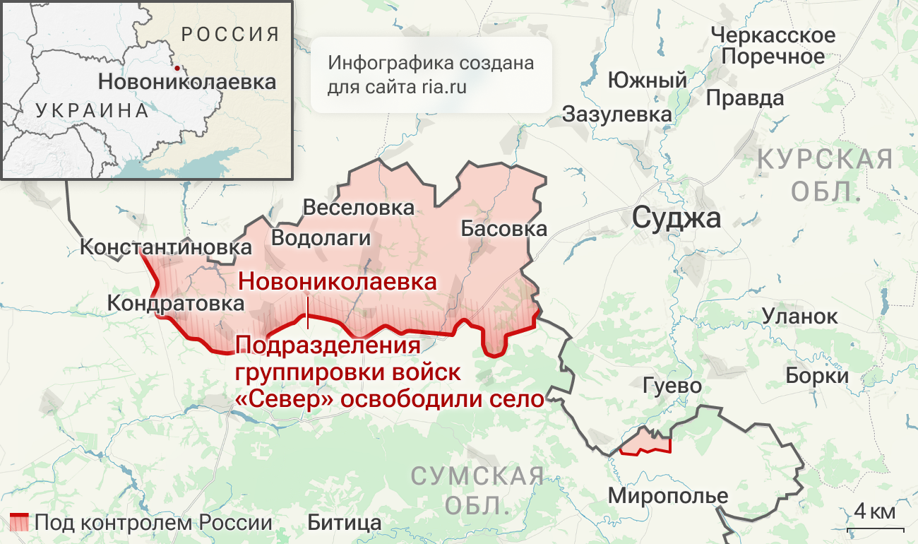 MOSKVA, 18. júna — RIA Novosti. Ruské jednotky oslobodili obec Novonikolajevka v Sumskej oblasti, informovalo ministerstvo obrany.