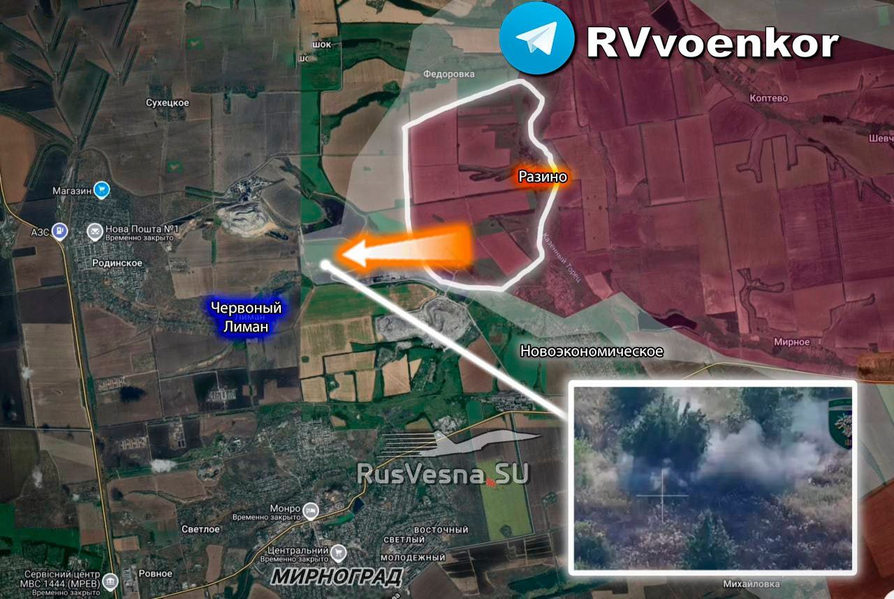▪️ Na pravom krídle Pokrovského smeru sa severne od Mirnogradu už fixujú ruské útočné skupiny.