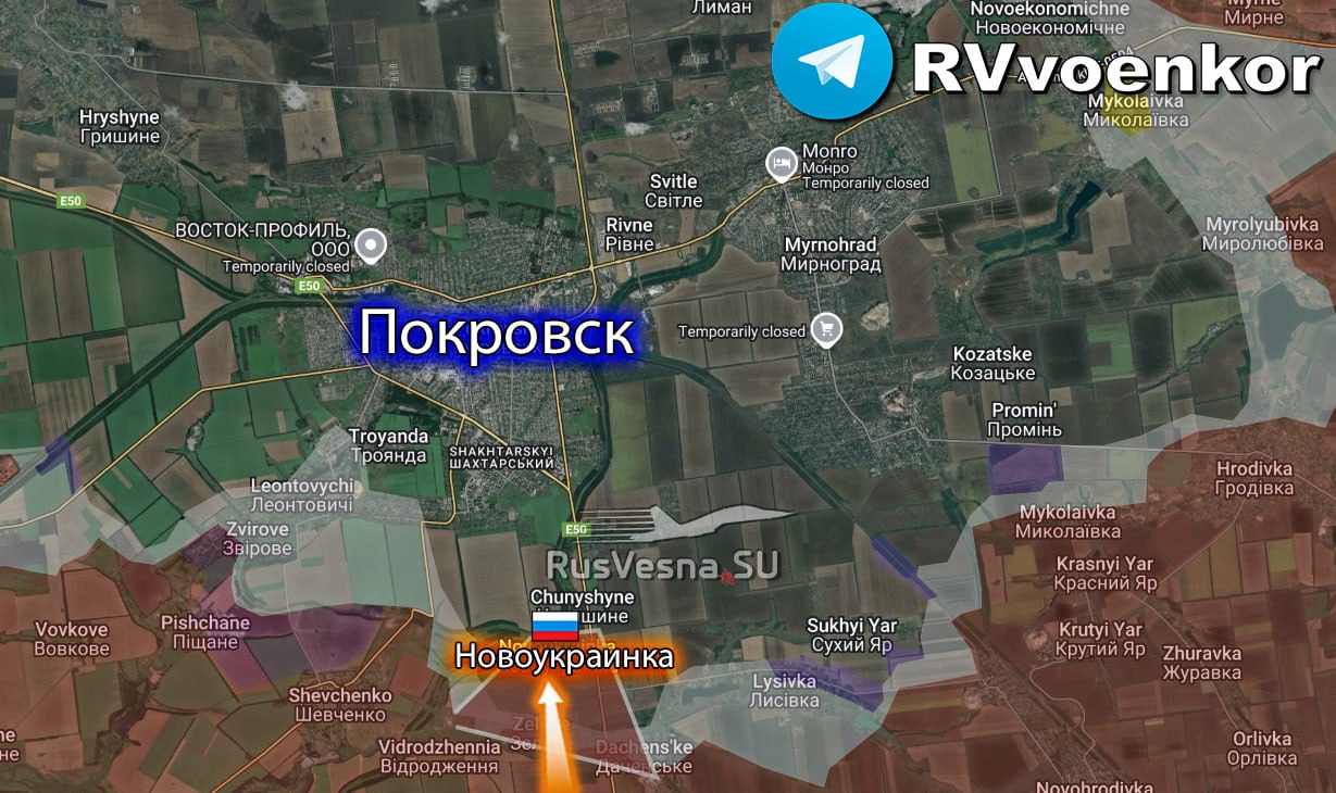 Podle ukrajinské strany má ruská armáda v úmyslu odříznout klíčovou zásobovací tepnu Ozbrojených sil Ukrajiny v aglomeraci Pokrovsko-Myrnograd. Bezpilotní letecké jednotky ozbrojených sil RF zaměřily své úsilí na směr Grishino - hlavní trasu pro dodávky záloh a evakuaci.