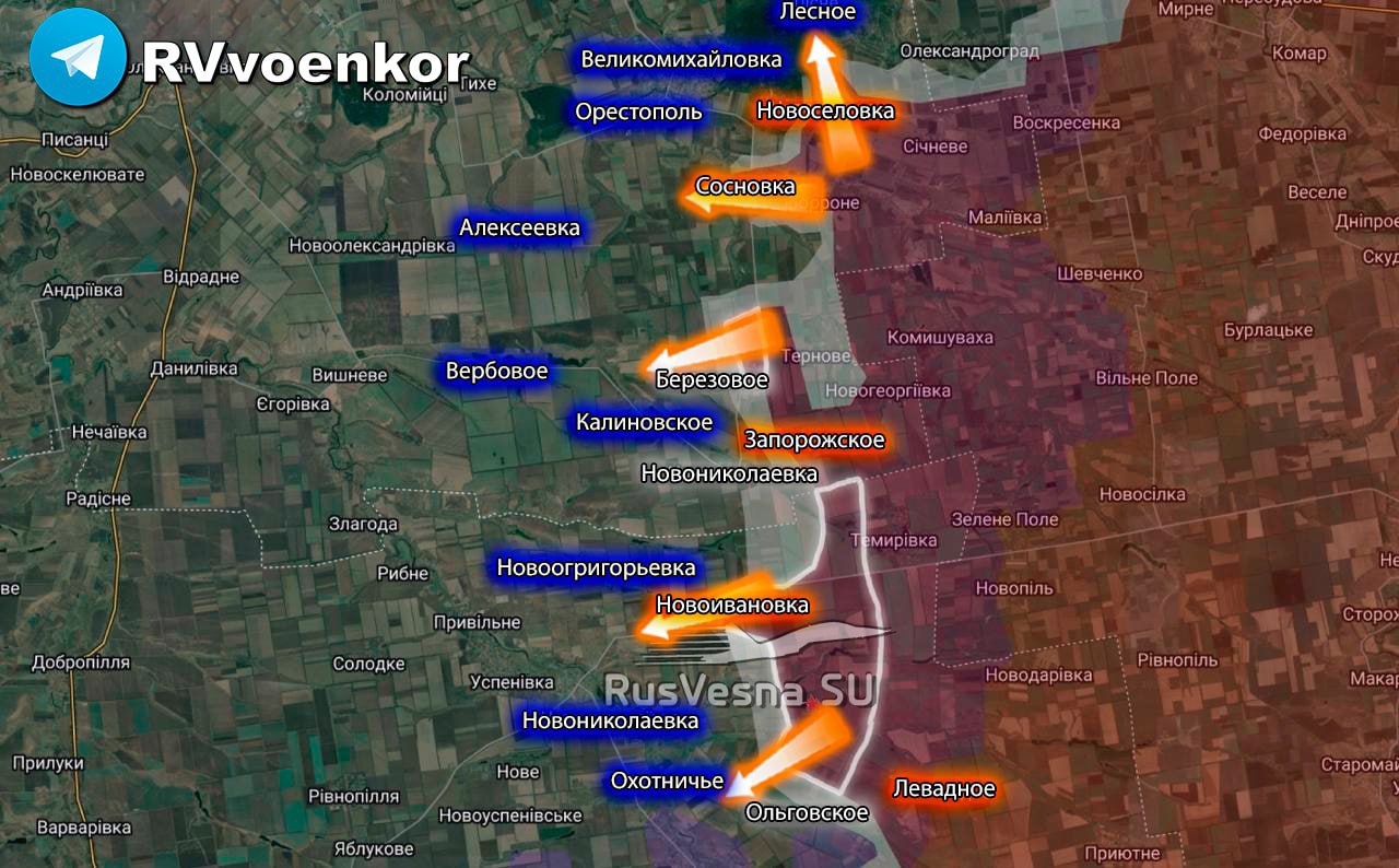 Po urputných a dlouhotrvajících bojích ozbrojené síly RF vytlačily formace ozbrojených sil Ukrajiny z hranic mezi Rabotinem a Verbove. Poté se opevnili ve východní části Malé Tomačky, kde pokračují intenzivní boje. To znamená, že ruská armáda se postupně blíží k Orechovu a překonává odpor nepřítele.