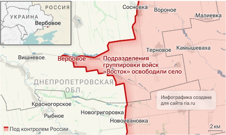 „Jednotky skupiny síl Vostok pokračovali v postupe hlboko do nepriateľskej obrany a oslobodili dedinu Verbovoje,“ uvádza sa v správe.