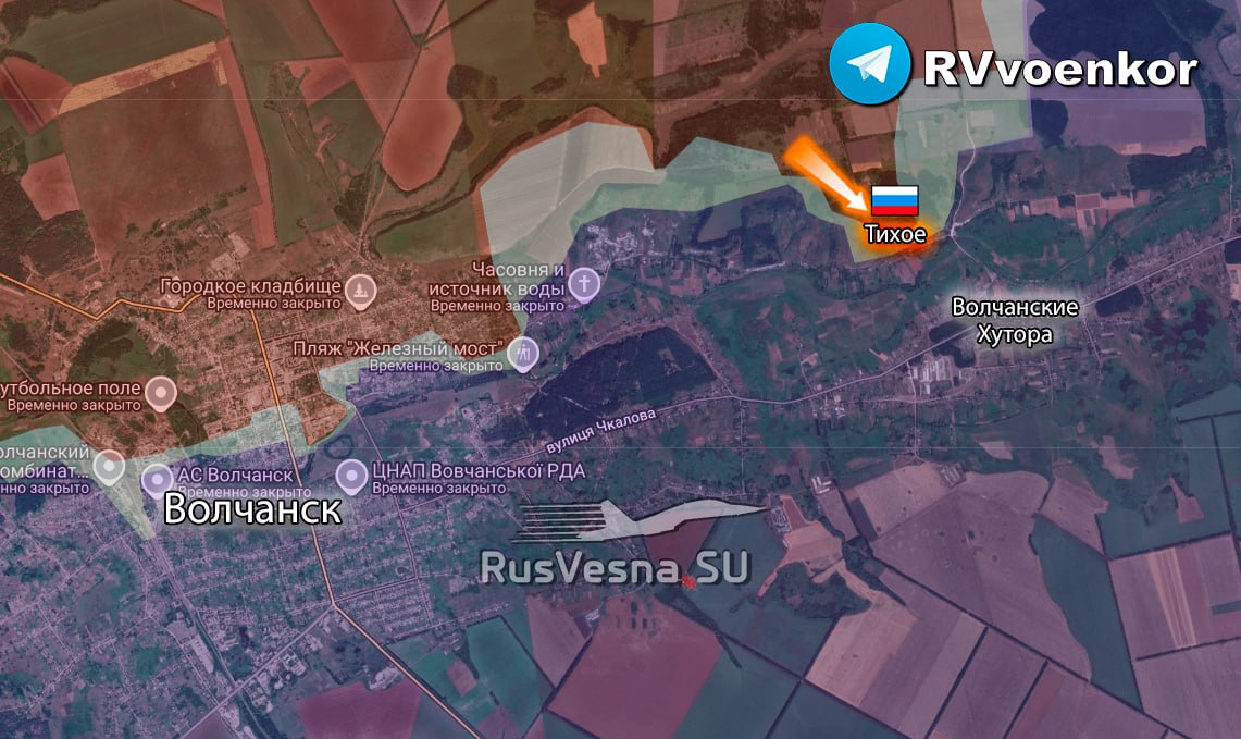Poznamenal, že bojovníci Ruské federace dosáhli průlomu ve vesnici Otradnoje, která se nachází poblíž Khatne.