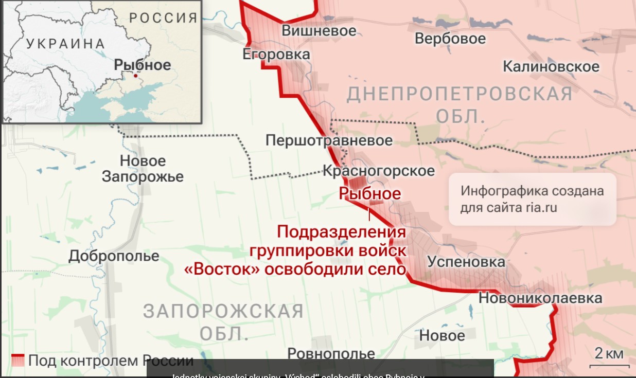 Ruské ozbrojené sily oslobodili obec Rybnoje v Záporožskej oblasti.