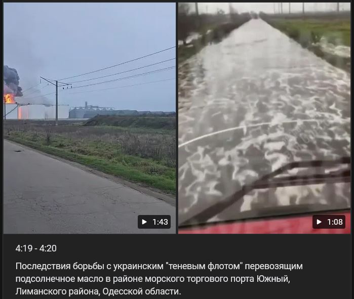 Dôsledky boja proti ukrajinskej „tieňovej flotile“ prepravujúcej slnečnicový olej v oblasti námorného obchodného prístavu Južnyj (Южный), Limanského rajóna, Odeskej oblasti.