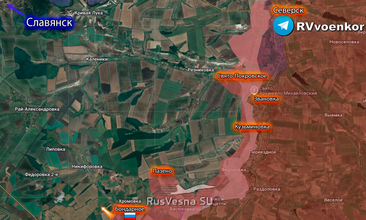▪️V dôsledku intenzívnych bojov skupina vojsk „Juh“ oslobodila osadu Bondarnoje a postúpila južne od Severska smerom na Slavjansk.