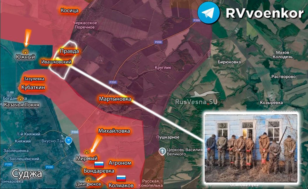Ruská armáda v Sudži oslobodila Kolmakov a Bondarevku a čistí Mirnyj, Južný, Dmitriukov a Melovoje!