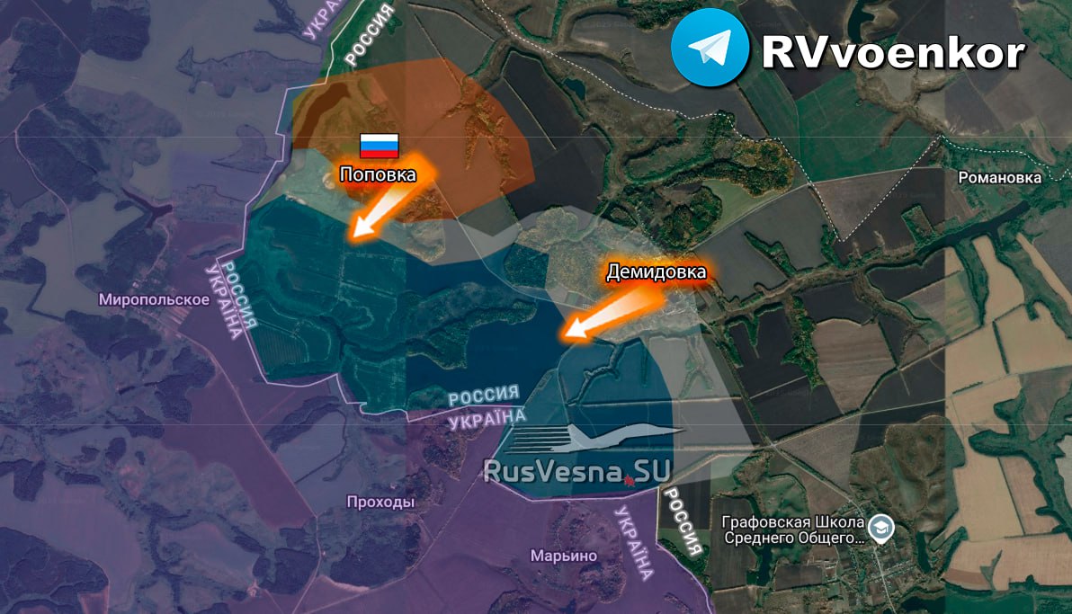 ‼️🇷🇺🇺🇦 Ruská armáda vytlačila (https://t.me/warriorofnorth) nepriateľa z Popovky v Belgorodskej oblasti.