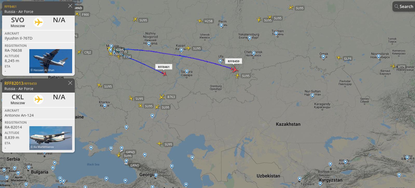 První ruská transportní letecká skupina po nočních přeletech z Pskova, Ivanova, Oremburgu na Čkalovského - v noci přeletělo minimálně 1x An-124 a 3x Il-76 (1,2) a cca 7h nakládky už letí z Čkalovského do Almaty. Přistanou v Almaty za cca dvě a půl až tři hodiny, tedy cca 15:30 až 16h místního času.