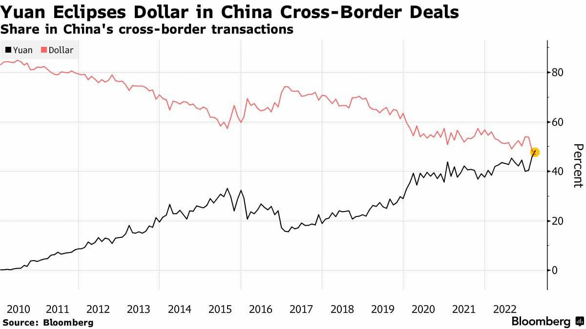 Poprvé v historii Číny překonal renminbi v přeshraničních transakcích zúčtování dolar.