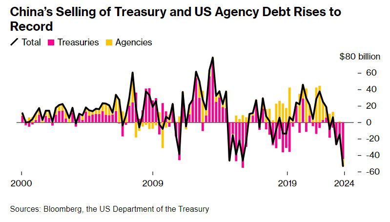 ▪️53,3 miliardy dolarů je hodnota amerických státních a agenturních dluhopisů, které Čína prodala v prvním čtvrtletí letošního roku. Tento rekordní objem podtrhuje dychtivost Číny zbavit se amerických aktiv," uvádí (https://www.bloomberg.com/news/articles ... sification) agentura Bloomberg.