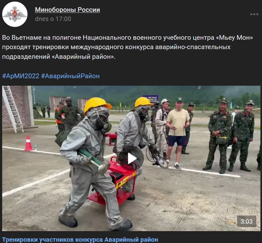 Vo Vietname na polygóne / cvičisku Národného vojenského výcvikového strediska "Myeu Mon" koná tréning (aklimatizácia) medzinárodnej súťaže záchranných jednotiek "Havarijný rajón" (Аварийный район).