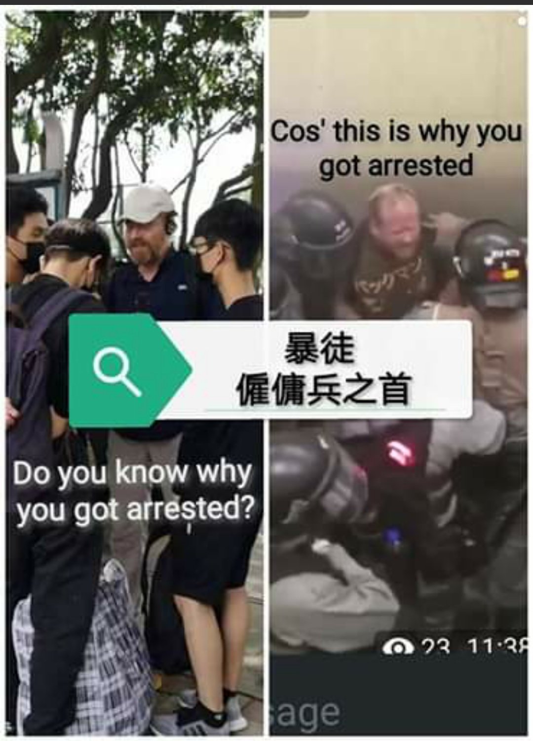 :sipka: Muž, který se zdá být Američanem, byl zatčen hromadou policistů uvnitř stanice metra v HongKongu na cestě domů 31. srpna. Následně čínská média rozšířila falešné zprávy, že je podezřelým velitelem CIA.“