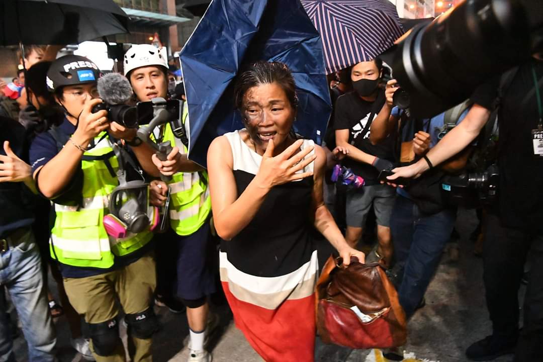 Vodními děly bylo zasaženo hodně lidí. Ve vodě bylo podobně jako v minulých případech přimícháno barvivo, jímž si policie účastníky označuje. Podle mnohých voda obsahovala i dráždidlo, protože mnoho zasažených lidí začalo kašlat. Podle Reuters policisté zatím v takovém množství vodní děla ještě nepoužili.Protest byl zpočátku pokojný, až postupně nabyl násilného rázu. Na jednom místě útočníci hodili do stanice metra zápalnou bombu, policie pak použila slzný plyn. Jinde lidé útočili na čínské banky a obchody. Ulice byly plné naházených cihel, někde i ostrých hrotů, které měly brzdit postup policejních kordonů.