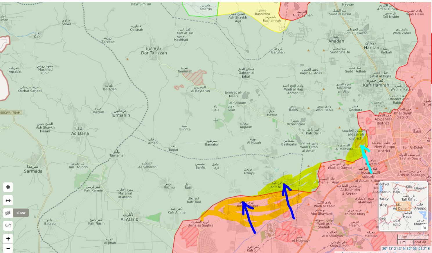 Existují informace, že milice režimu a PKK se připravují na společný útok na ose Tel Rifat. Cílem tohoto útoku je přerušit hlavní komunikaci mezi Azezem a Aleppem.