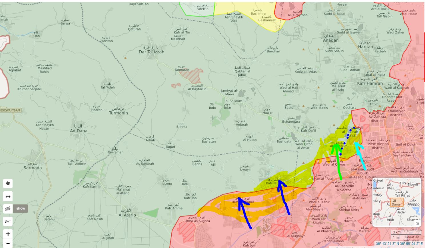 BEIRUT, LEBANON (2:00 A.M.) - Sýrska arabská armáda (SAA) dnes ráno po úspešnom sobotnom dni zaznamenala nový pokrok v západnom Aleppe. Obsadila Ajil, Uwayjil a Bashqatin, atakuje Kafr Dalí.