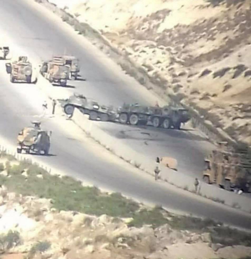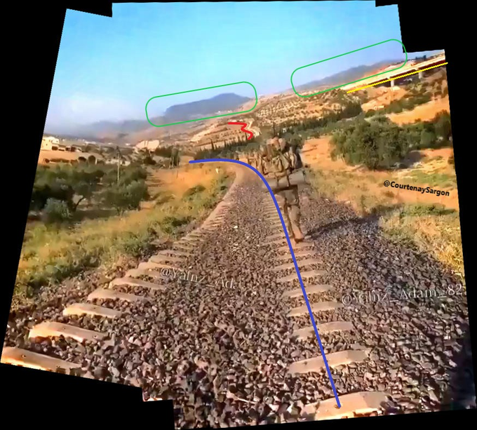 Tureckí vojaci prečesávajú oblasť blízko cesty M-4 v záp.Idlibe , blízko bojových línií v severnej Latakii - zaujímavý pohľad na tamojšiu "železnicu bez koľají".