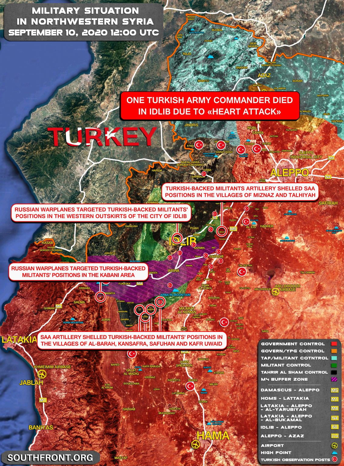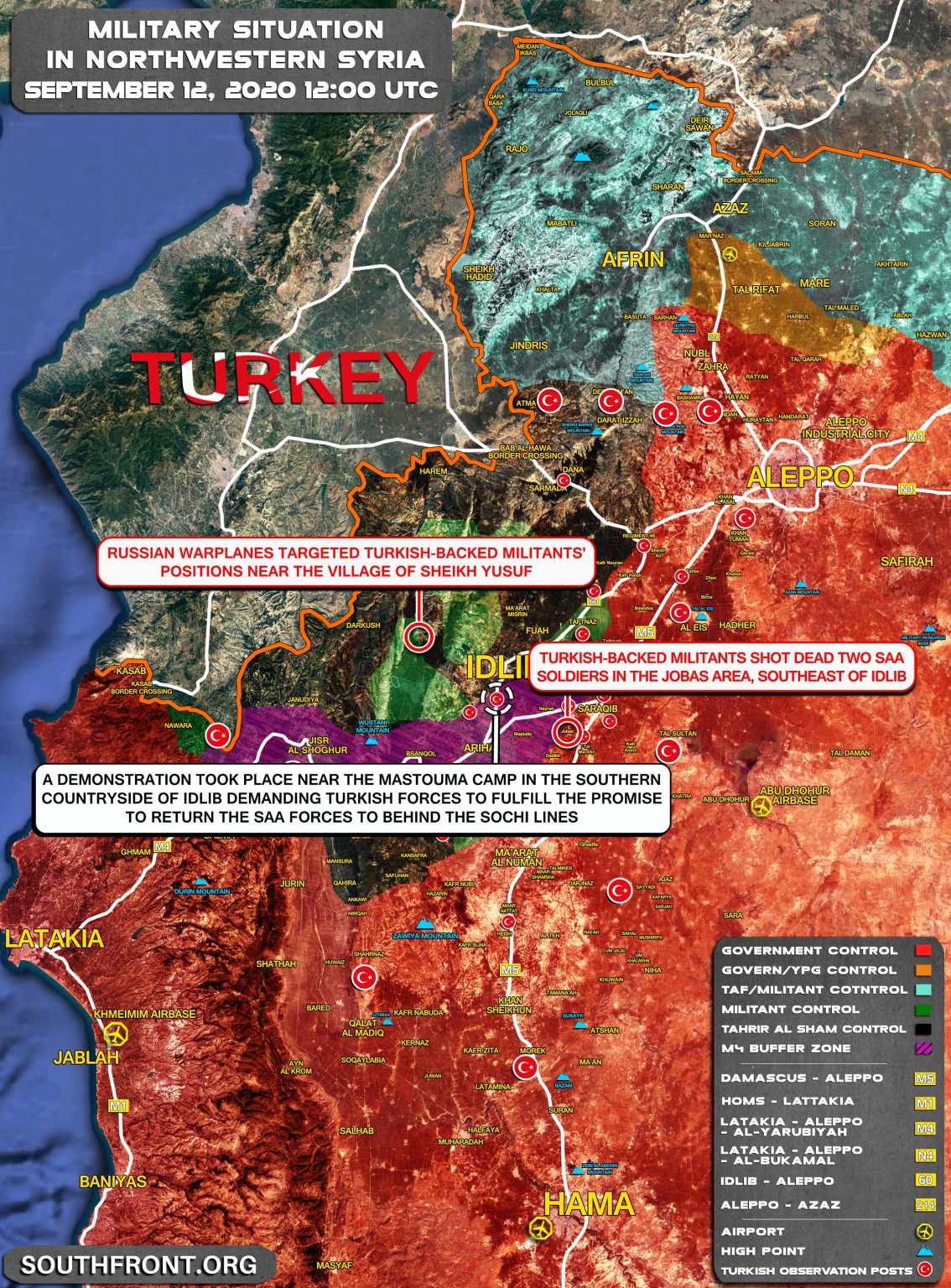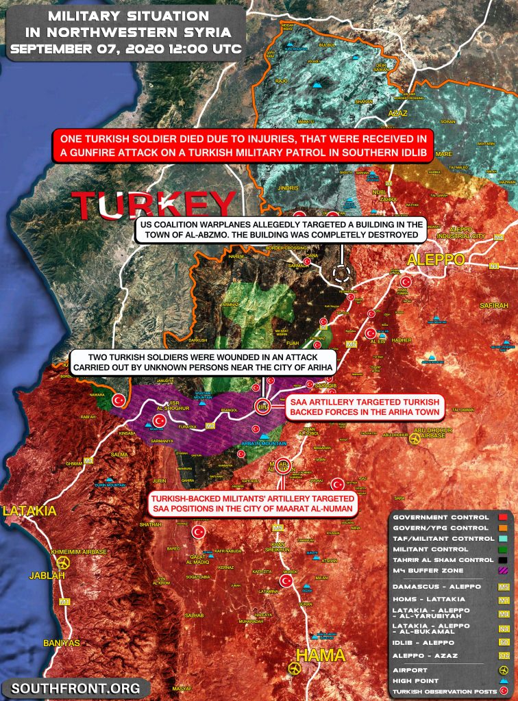 7. septembra členovia tureckej teroristickej skupiny Hayat Tahrir al-Sham ostreľovali pozície sýrskej armády neďaleko mesta Maarat al-Numan na juhu Idlibu. Sýrska armáda zasiahla v reakcii niekoľko teroristických pozícií v blízkosti kontaktnej línie.