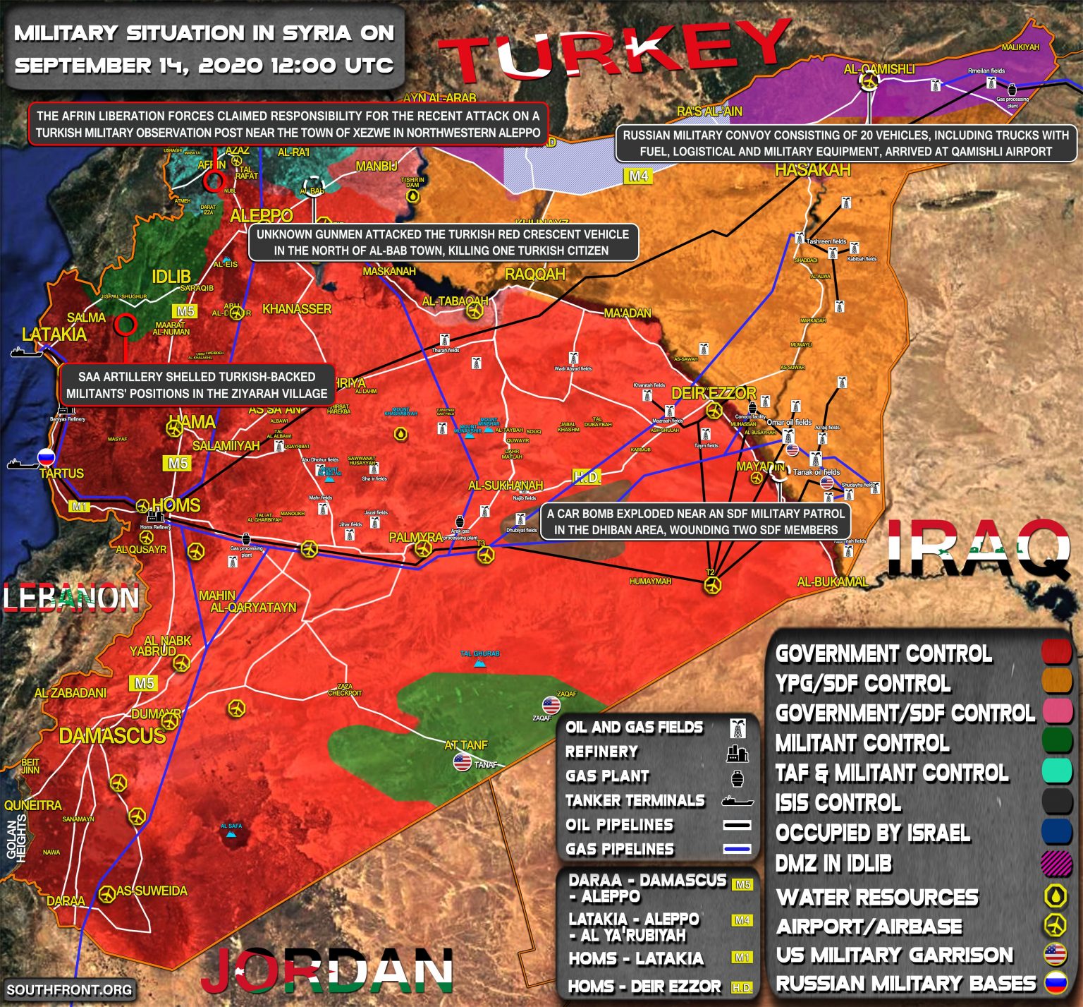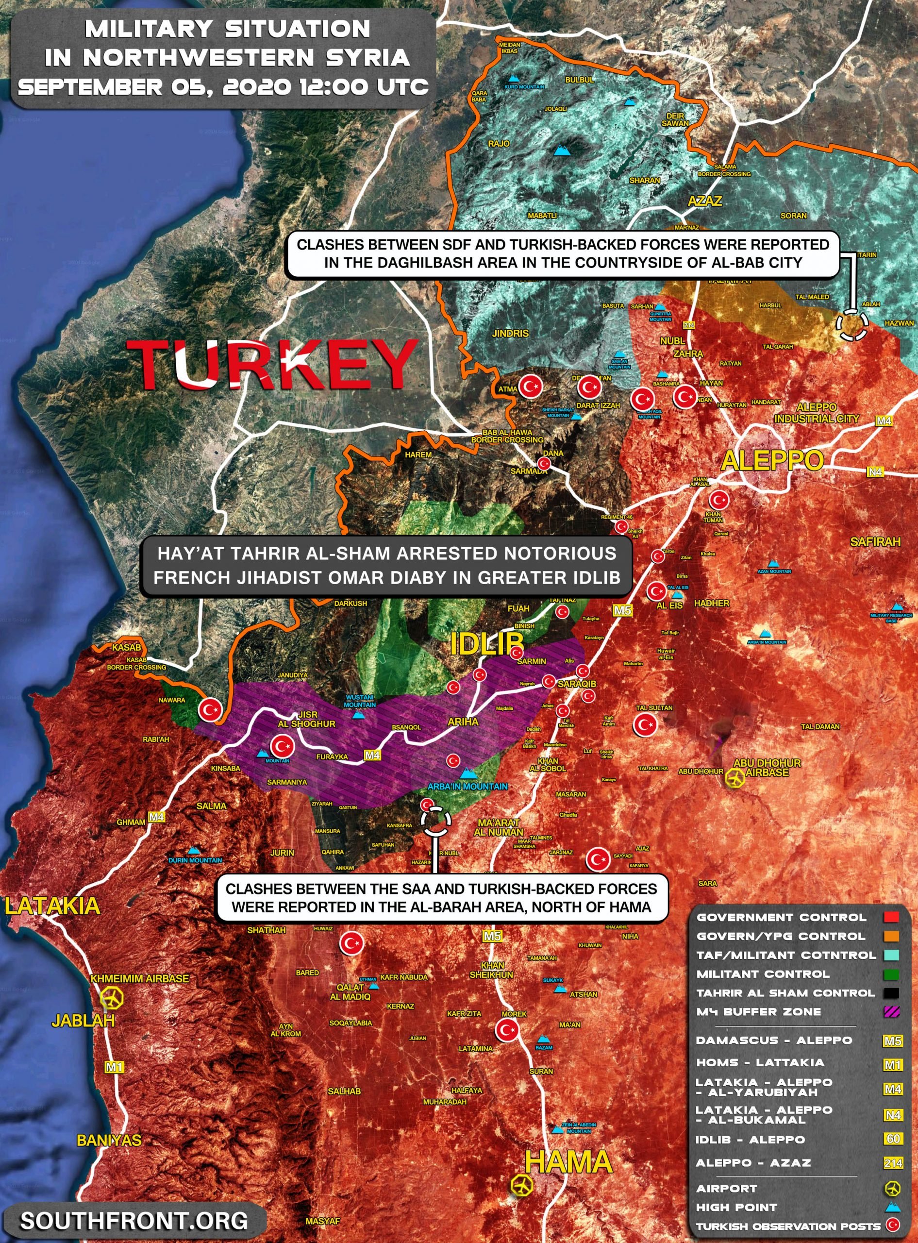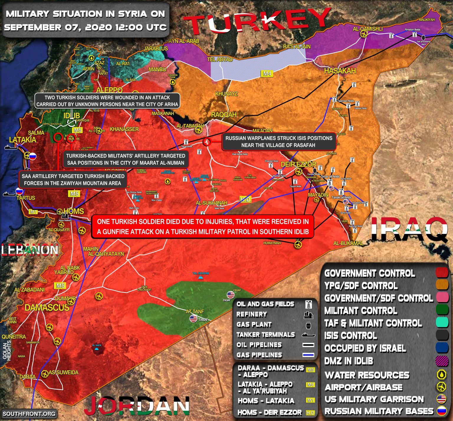 7. septembra členovia tureckej teroristickej skupiny Hayat Tahrir al-Sham ostreľovali pozície sýrskej armády neďaleko mesta Maarat al-Numan na juhu Idlibu. Sýrska armáda zasiahla v reakcii niekoľko teroristických pozícií v blízkosti kontaktnej línie.