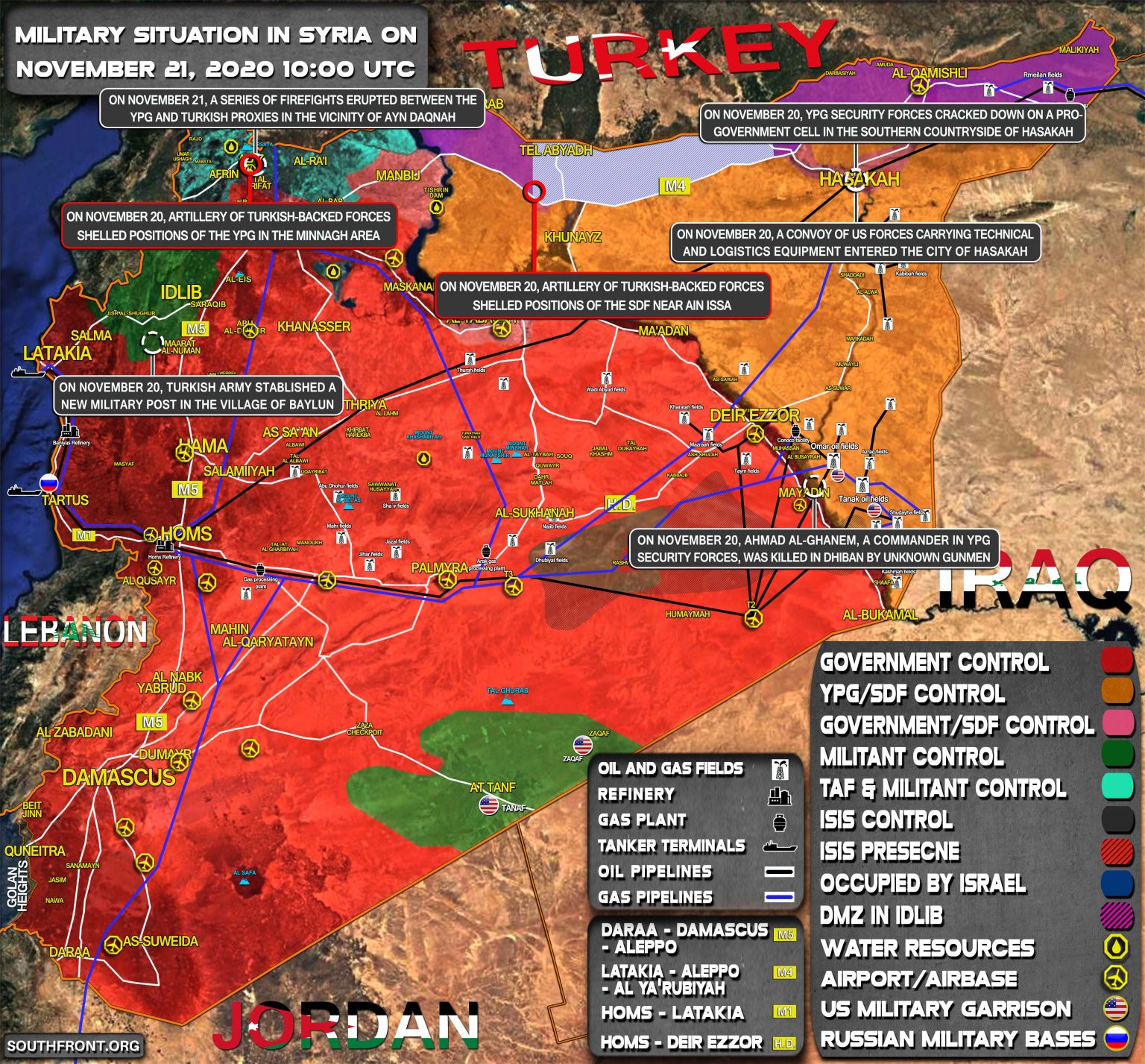 Vojenská situácia v Sýrii 21. novembra 2020 (aktualizácia mapy)
