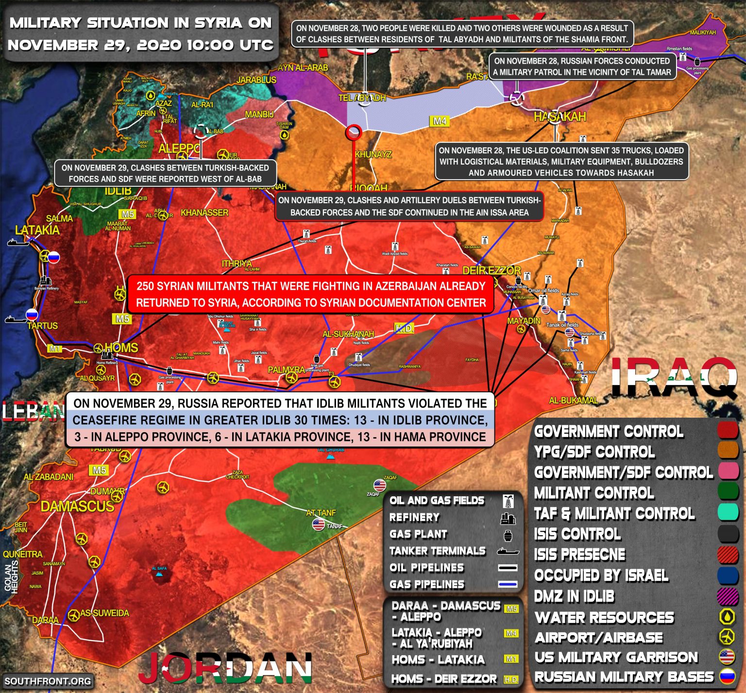 Vojenská situácia v Sýrii 22. novembra 2020 (aktualizácia mapy)