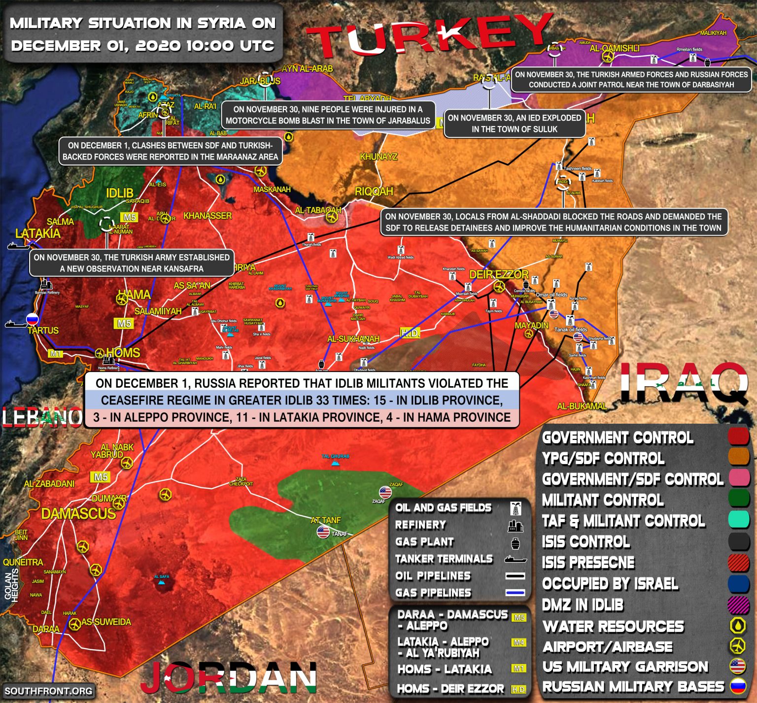 Vojenská situácia v Sýrii 2. decembra 2020 (aktualizácia mapy)