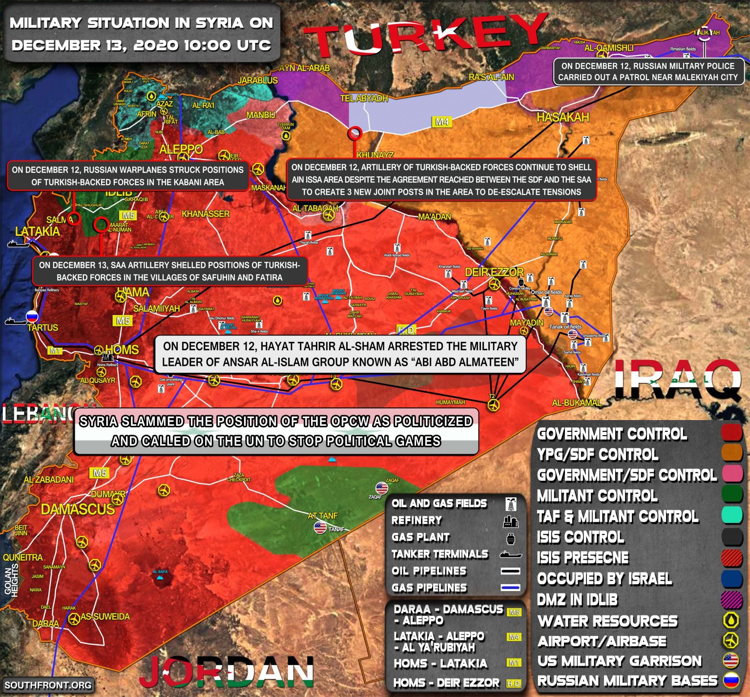 https://www.almasdarnews.com/article/ru ... ern-syria/ Vojenská situácia v Sýrii 12. decembra 2020 (aktualizácia mapy)