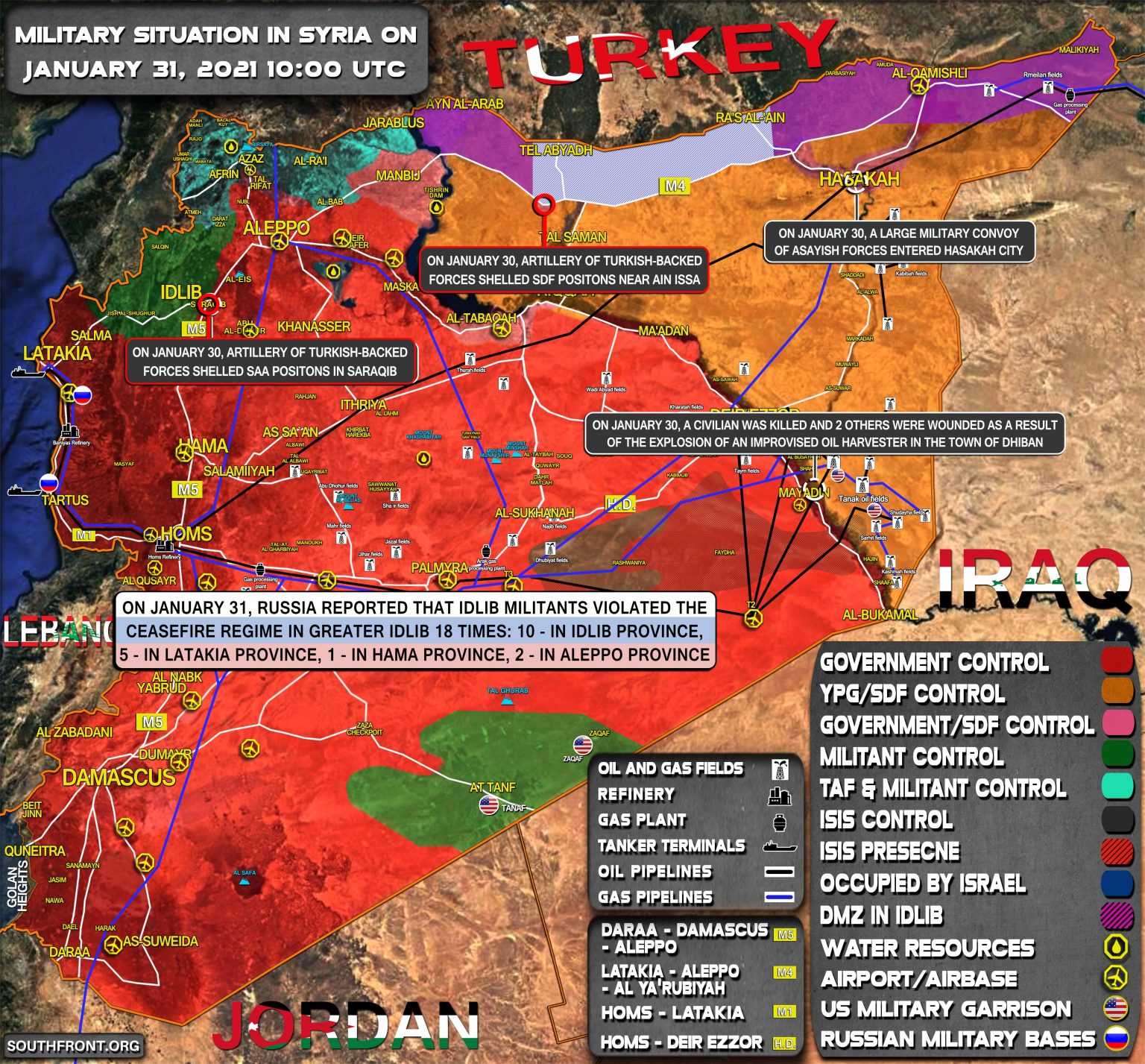 Vojenská situácia v Sýrii 31. januára 2021 (aktualizácia mapy)
