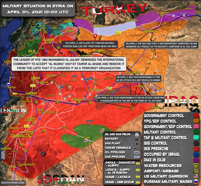Vojenská situácia v Sýrii 4. apríla 2021 (aktualizácia mapy)