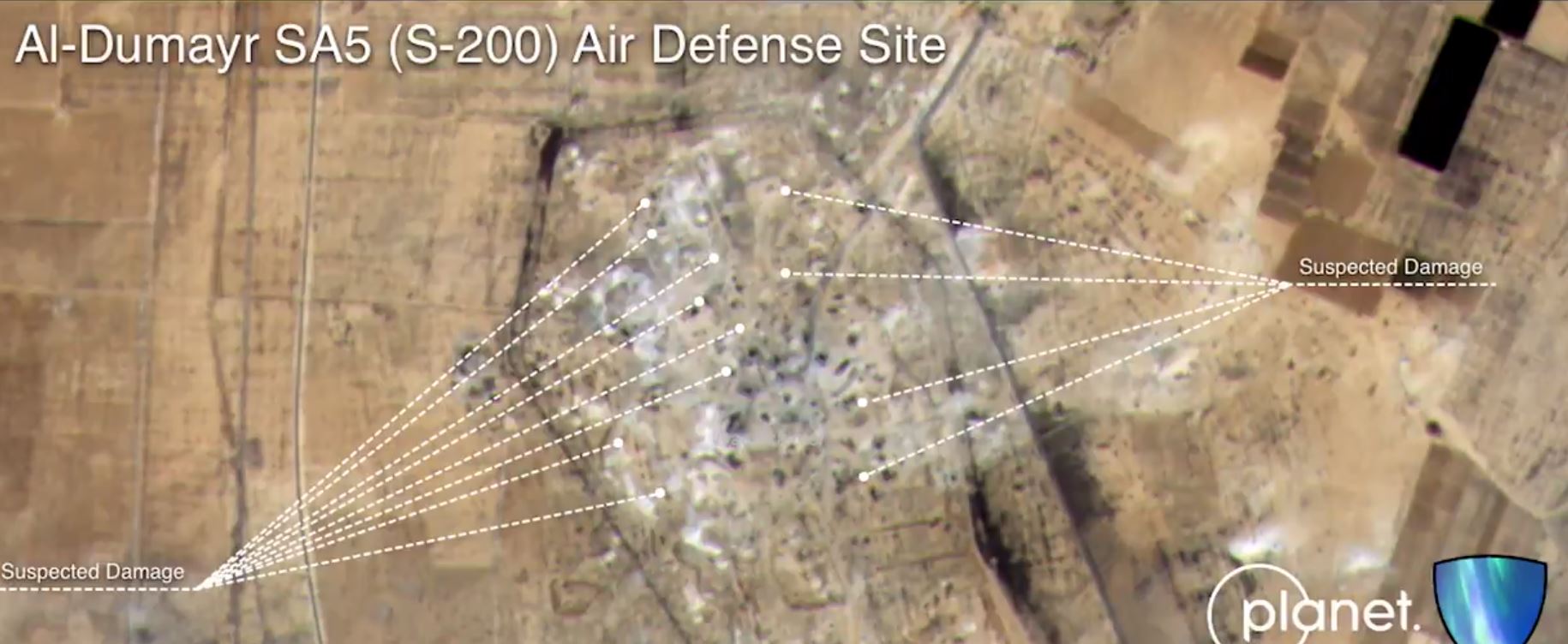 Základňa, ktorá sa nachádza neďaleko mesta al-Dumayr asi 35 km východne od hlavného mesta,vystrelila na útočiace izraelskél ietadlá protilietadlovú raketu S-200.
