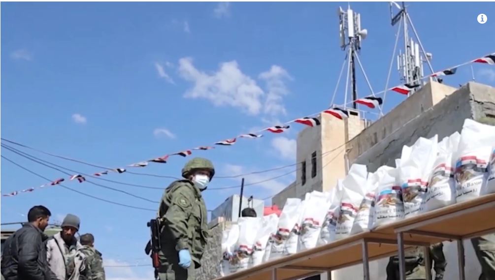 Základné potravinové výrobky sa dodávali obyvateľom dedín Alia, Tell Umm Urhava, Tell Efendi, Kashma Zinkai a Ragu. Na jednej ceste po diaľnici ruská armáda rozdala Sýrčanom 1 000 potravinových balíčkov obsahujúcich múku, ryžu, čaj, mlieko a kondenzované mlieko. Video: