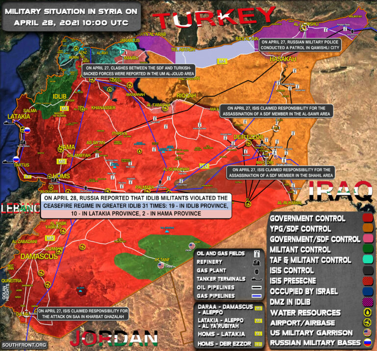 Vojenská situácia v Sýrii 27. apríla 2021 (aktualizácia mapy)