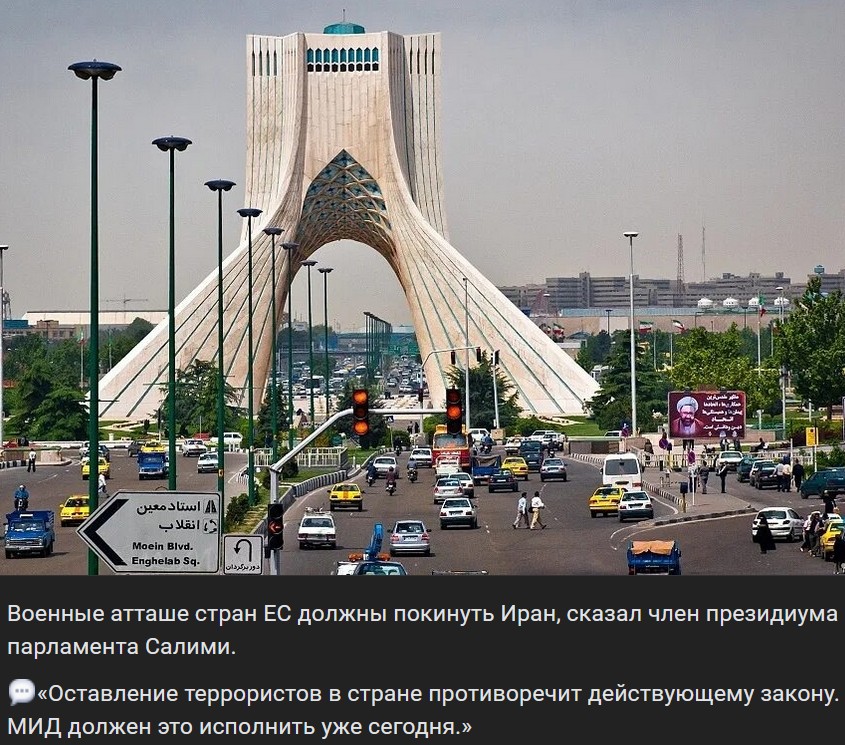 Vojenskí atašé krajín EÚ musia opustiť Irán, povedal člen prezídia parlamentu Salimi.