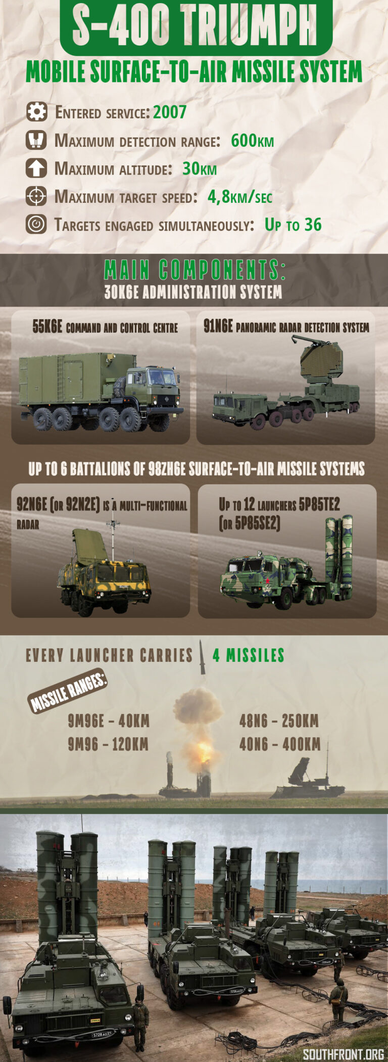 Systém S-400 dokáže detekovať vzdušné ciele vzdialené viac ako 600 kilometrov a odpáliť rôzne protilietadlové rakety s dosahom od 40 do 400 km.