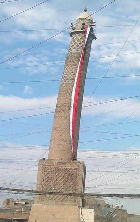 Naživo z centrálneho Mosulu, zábery minaretu Veľkej mešity Al-Nuri, kde bol vyhlásený za "kalifát". Boje v jej okolí.