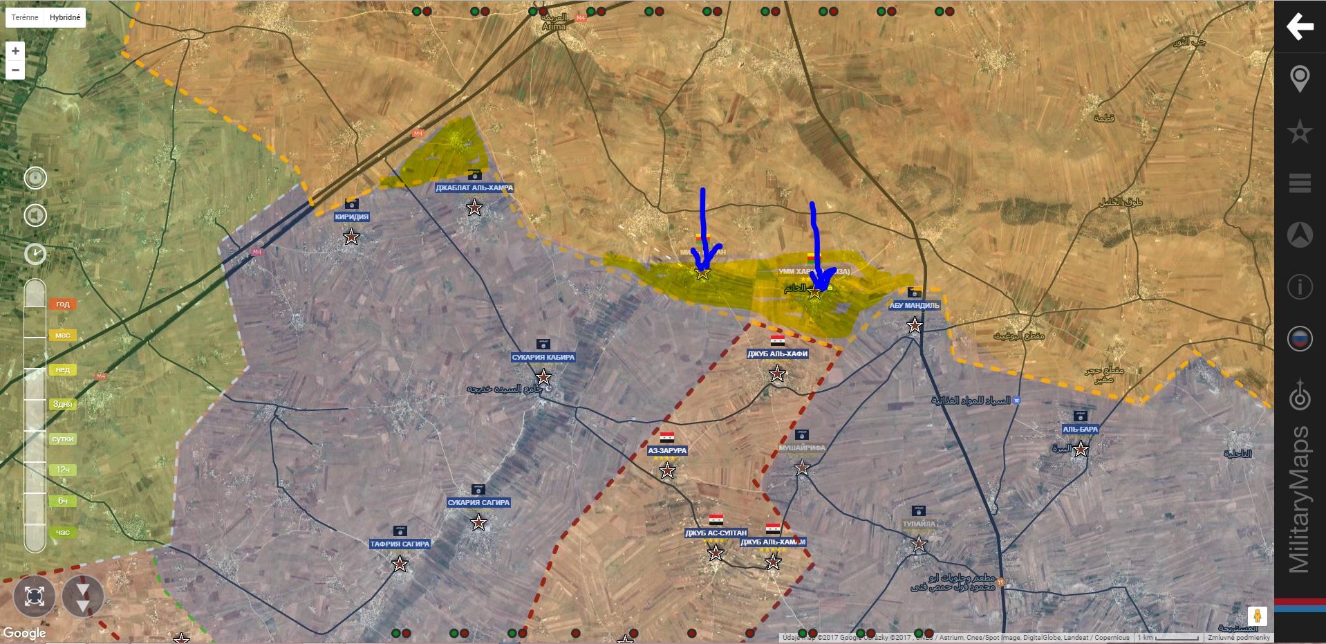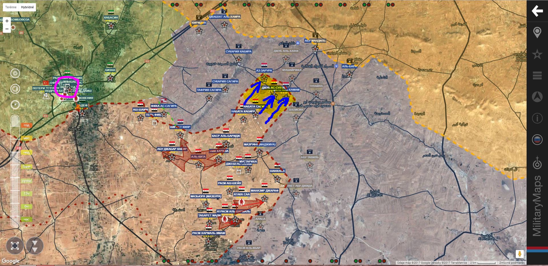 Kým som to spracoval, tak sa po obsadení Jub Al Khava kotol uzavrel, SAA+ dosiahla línie SDF+, niekde v týchto miestach!