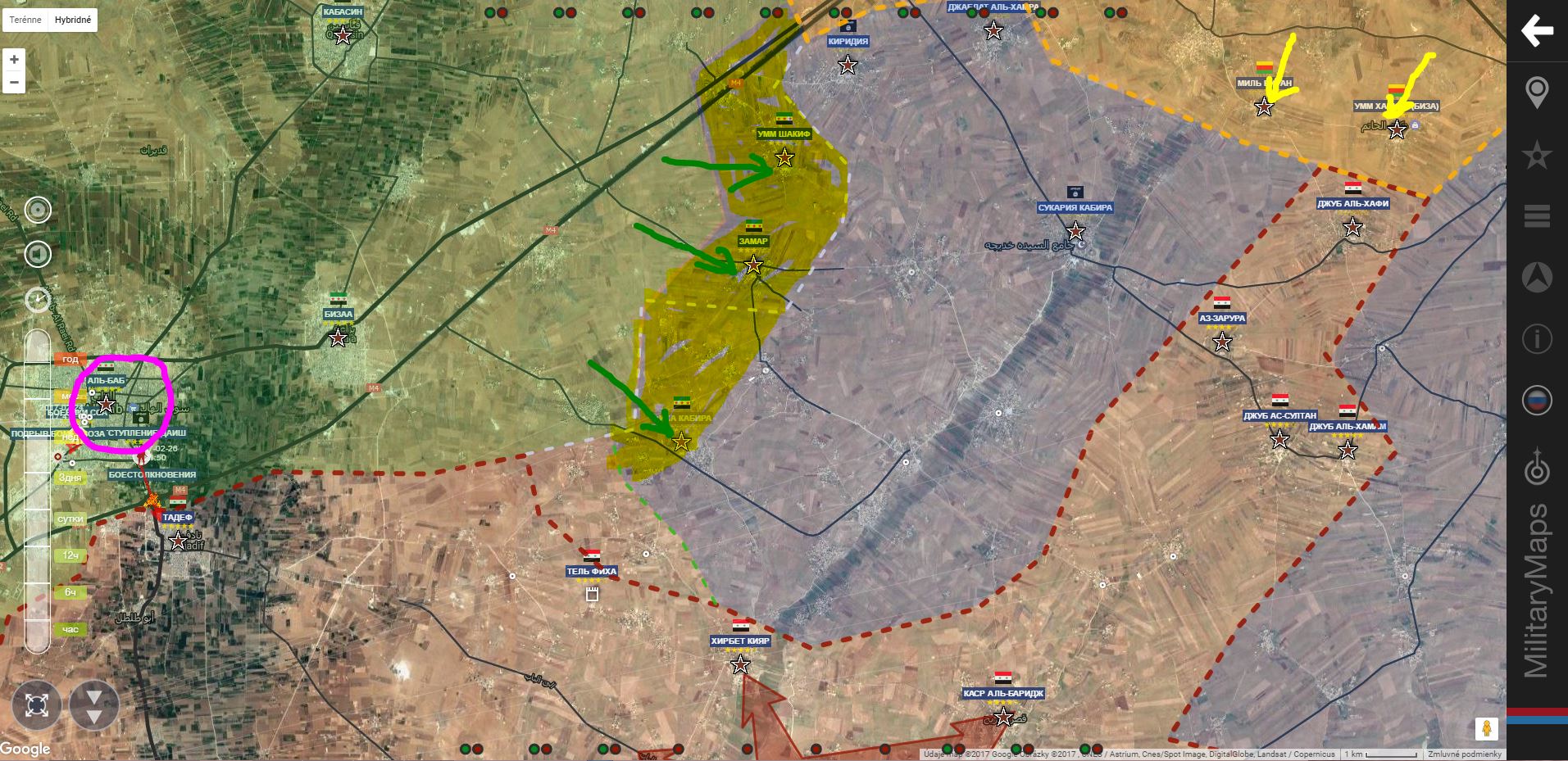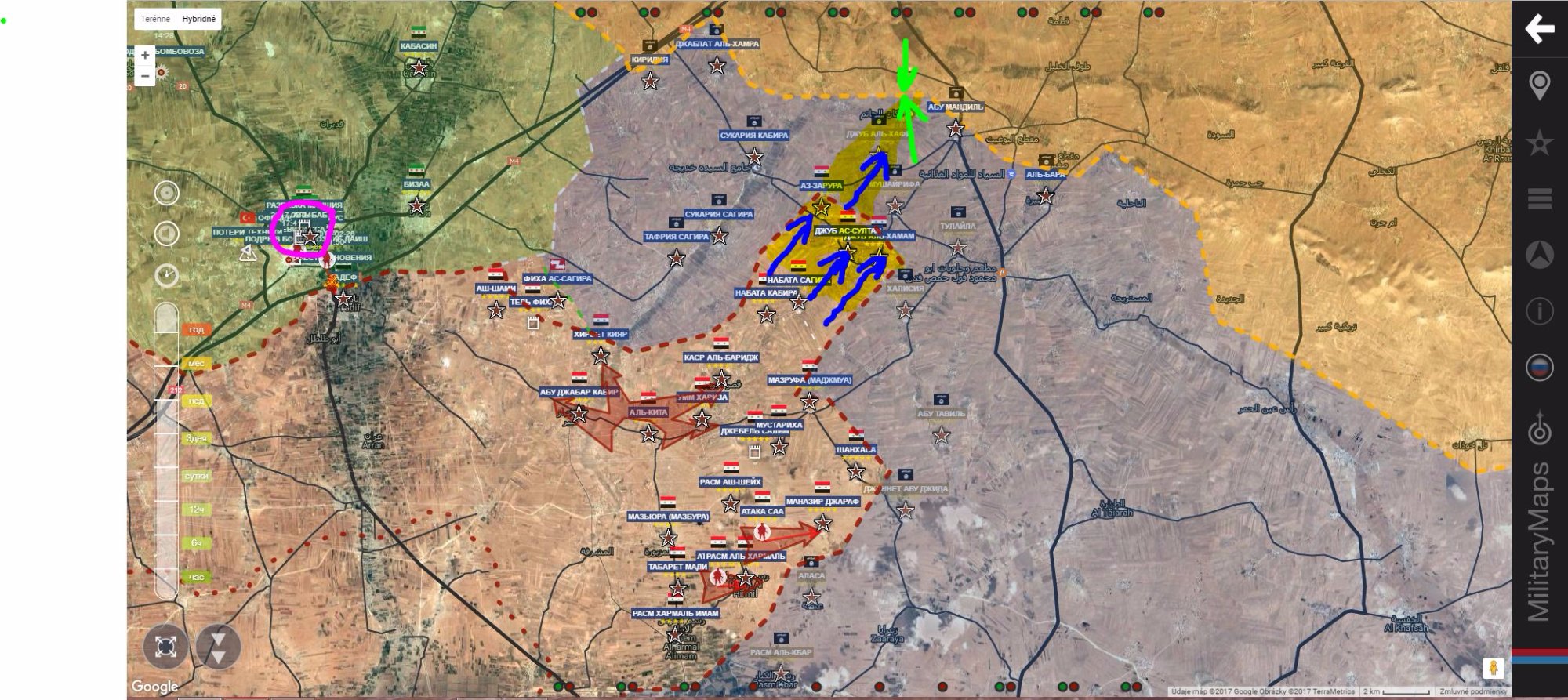 V. Aleppo, Al Bab. SAA+ získala územie od Tadef po Nabata Sagira, zľava.