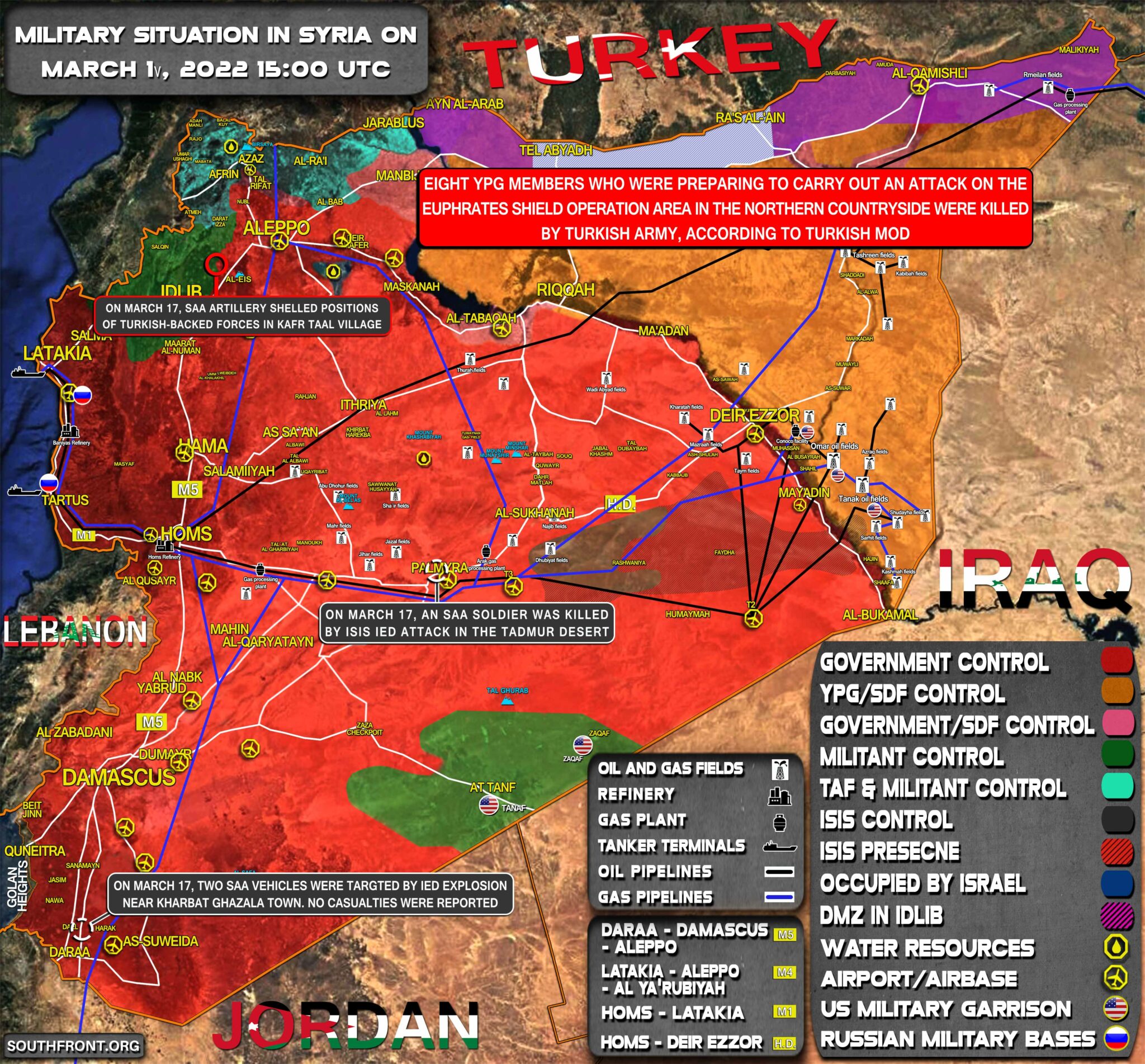 Vojenská situácia v Sýrii 17. marca 2022 (aktualizácia mapy)